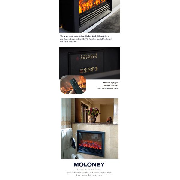 Remote and control panel make it more convenient to control every function of electric fireplace, power switch, timer control, independent switch of heating and flame, adjustable flame color.